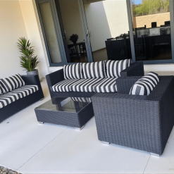 Built with treated wood frame and, the Black Mamba set doesn’t just look good—it’s made to last through the elements. The rich black color palette adds drama and elegance, while the generous cushions keep things inviting and comfortable.