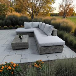The Snow Grey 3-Piece L Shape Patio Set brings a strong visual edge and relaxed comfort to your outdoor space—perfect for those who want to lounge in style.