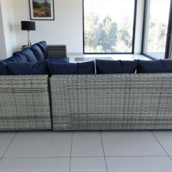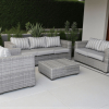 This spacious L Shape patio set comfortably seats up to five, making it perfect for entertaining, lounging, or family gatherings. The sleek design creates a bold contrast against the soft, grey cushions, offering a clean, contemporary look that fits any patio, deck, or garden space.